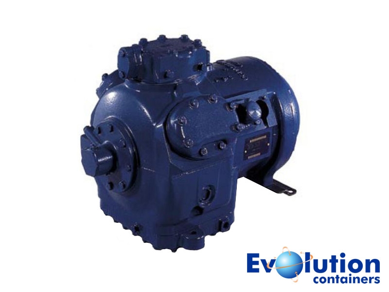 Compressor Carrier, Number of Cylinders: 6, Model: 06DR, Semi-hermetic, CFM: 41, Weight (Dry): 118 kg (260 lb), Approved Oil: Mobil ST32, Oil Charge: 3.6 liters (7.6 U.S. pints), Oil Sight Glass: The oil level range, with the compressor off, should be between the bottom and one-eighth level of the sight glass, Voltagem: 380 / 440 V, Part Number: 18-10129-20SV